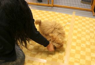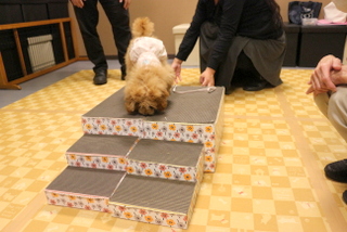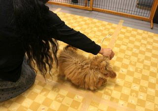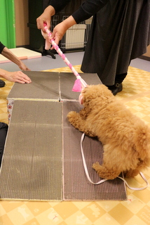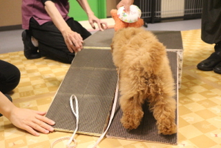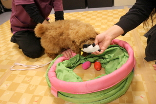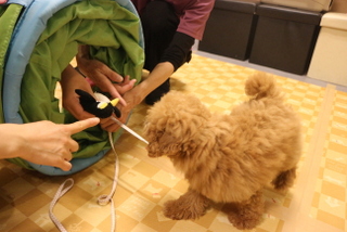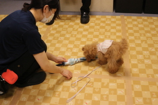 ブラッシングや足ふき、リードの付け外しの練習をし、