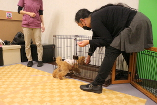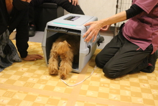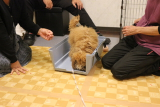 こちらで用意したクレートにも入る練習もしました