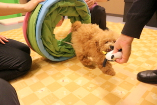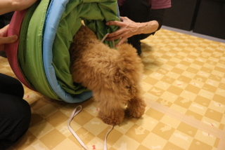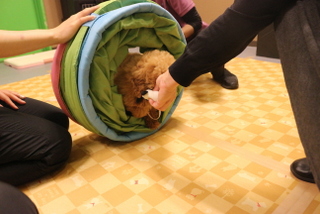 次はトンネルを立てた状態で実際にくぐる練習もおもちゃで